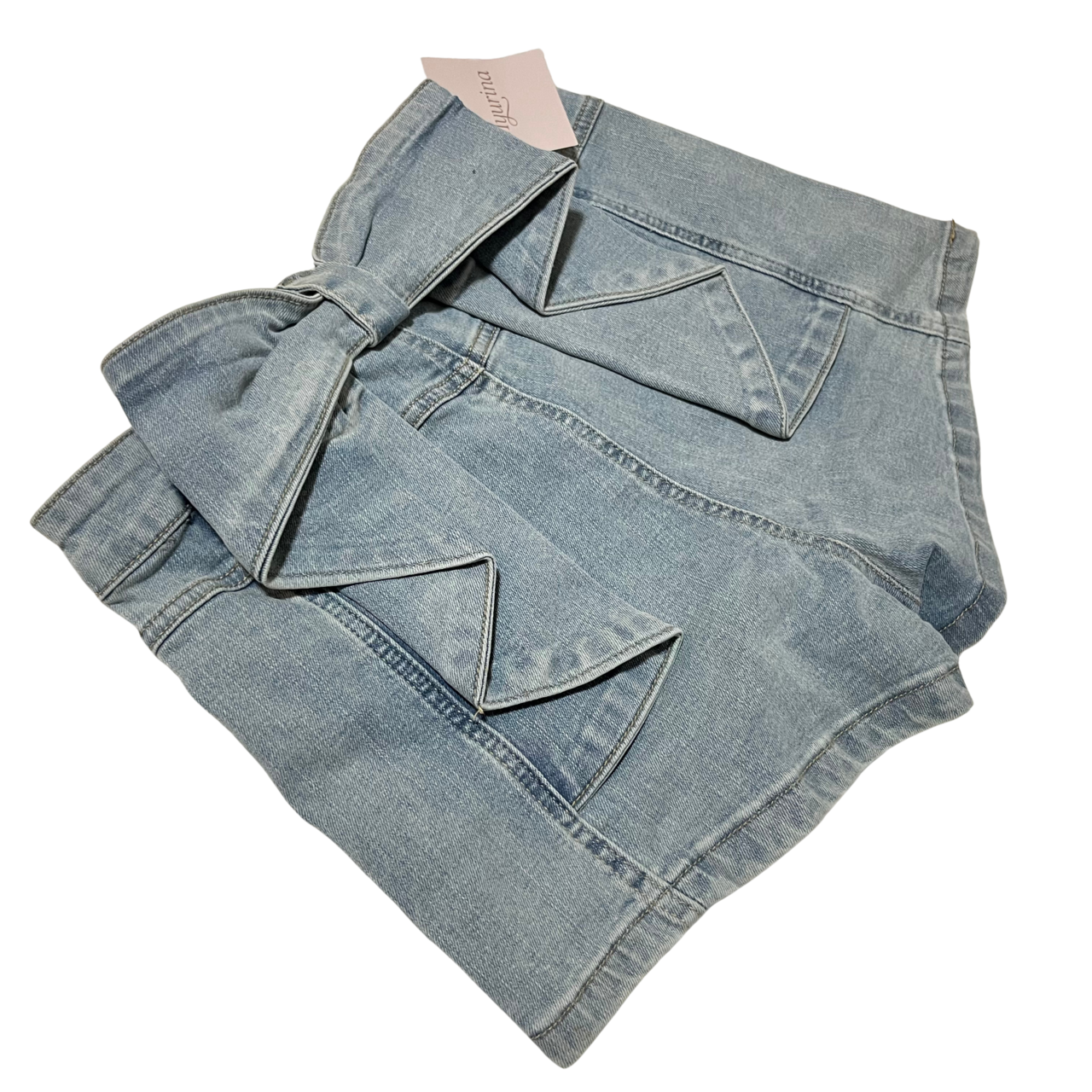 Myurina バックリボンデニムショートパンツ ショーパン ハイウエスト 66cm 短パン 春夏レディース服 ジーンズ y2k 平成ギャル 黒ギャル フェアリーグランジ