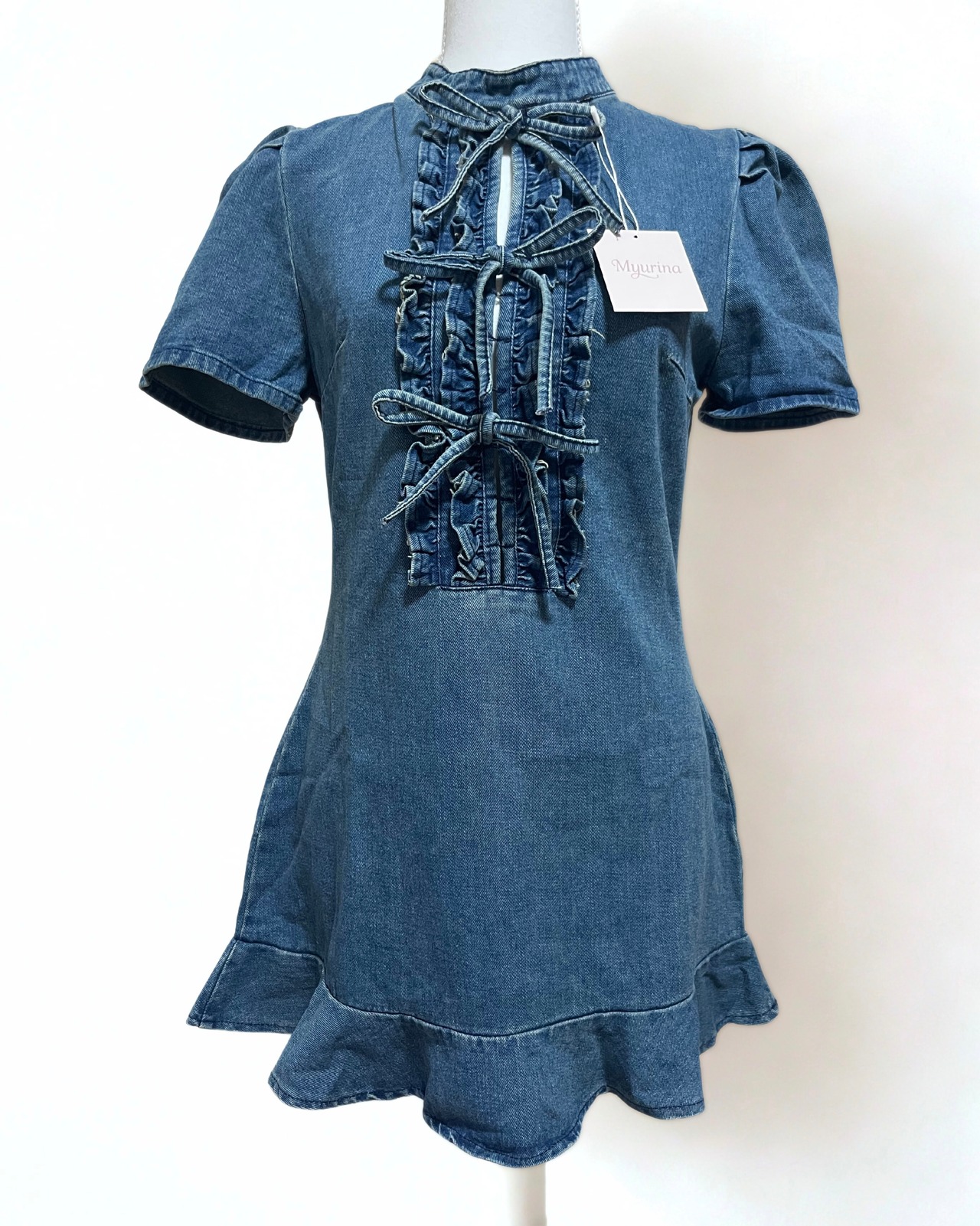 Myurina リボンデニムミニワンピース y2k ミニワンピース Aラインワンピース タイトワンピース miu系 レディース服 チャイナワンピース 量産型 ワンホン