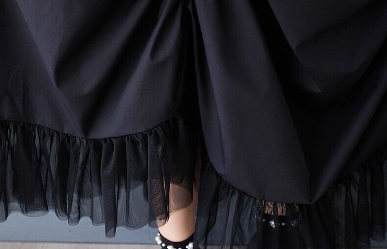 Myurina ドレープティアードワンピース 黒 ジャンパースカート 体型カバー オーバーオール Aライン モード系 フレアワンピース オールシーズン レディース服 シャツワンピース プリーツ