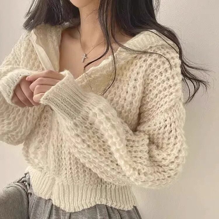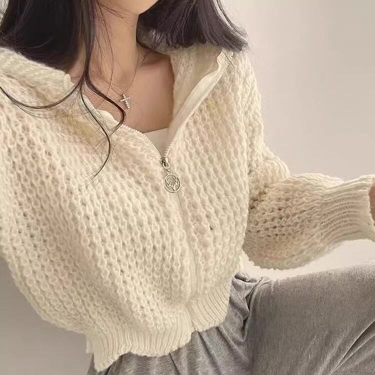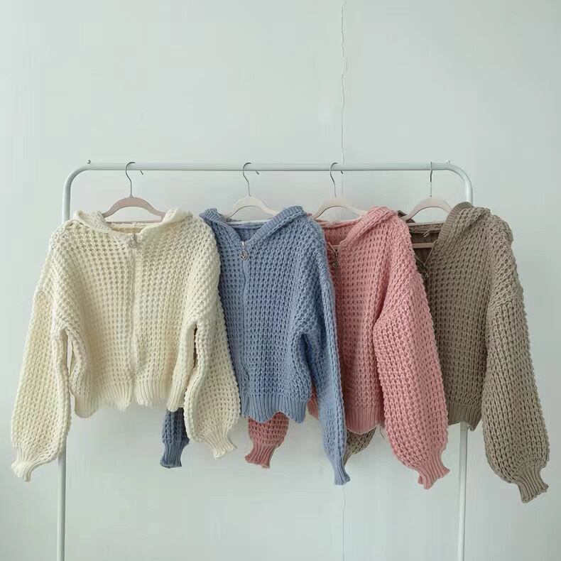 Myurina ワッフル編みパーカーカーディガン 全3色 フーディー ケーブルニット ジャケット miu系 Y2K レディース服 秋冬アウター ブルゾン 清楚系ギャル 韓国ストリート