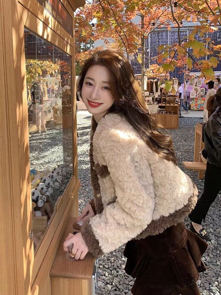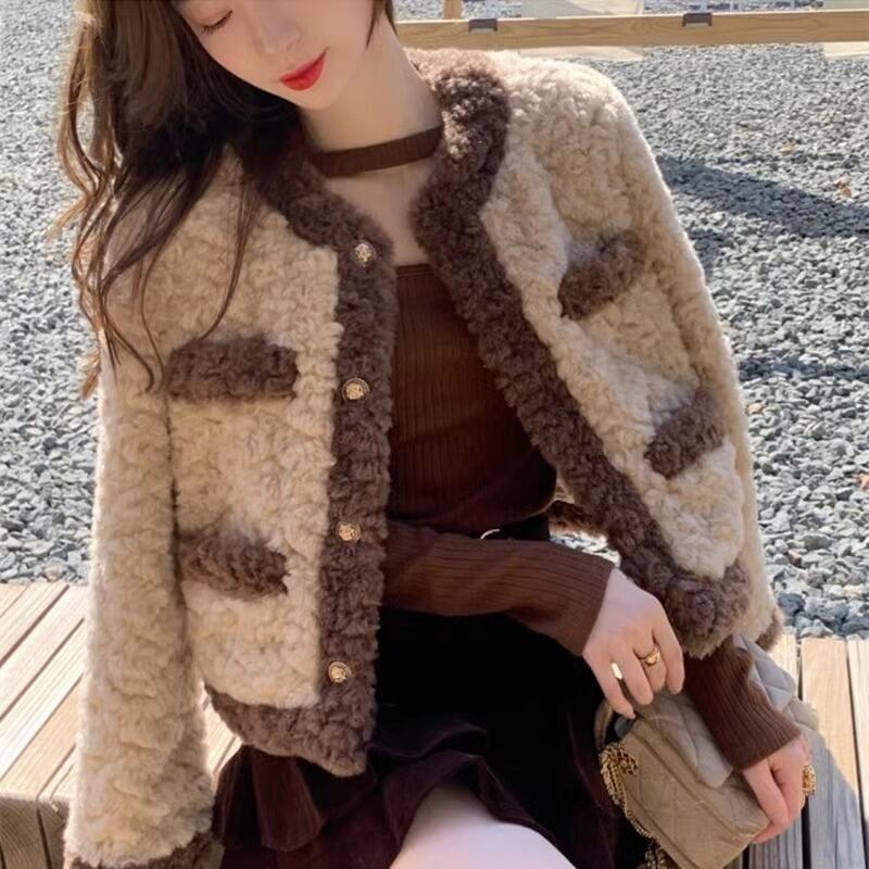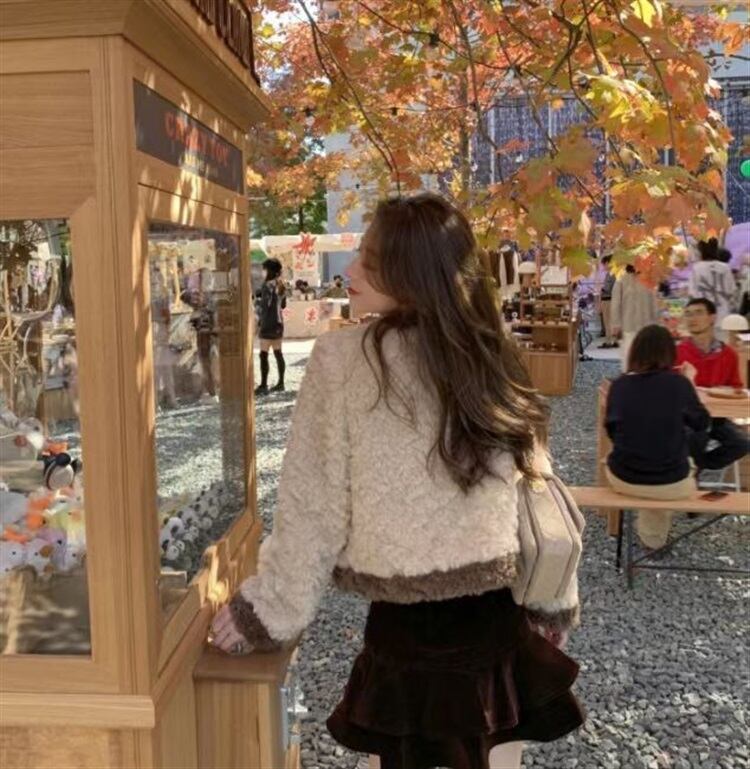 Myurina ツイード風ボアジャケット miu系 ノーカラージャケット レディース 秋冬アウター 襟なしジャケット 量産型 上品 ブルゾン モコモコジャケット