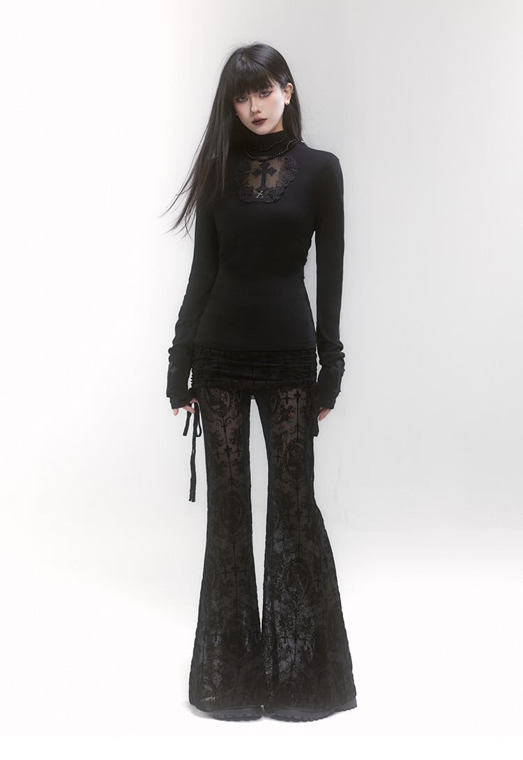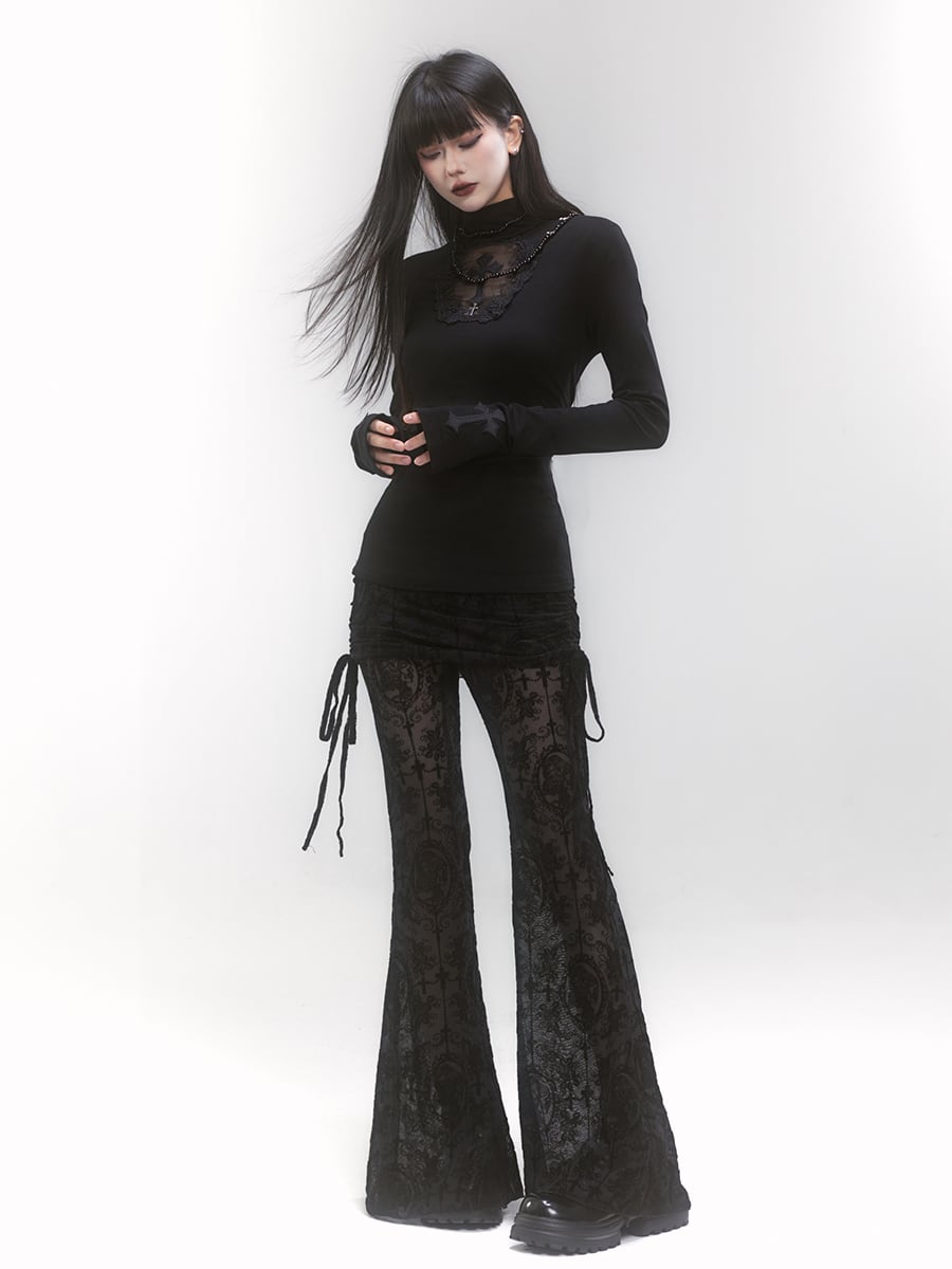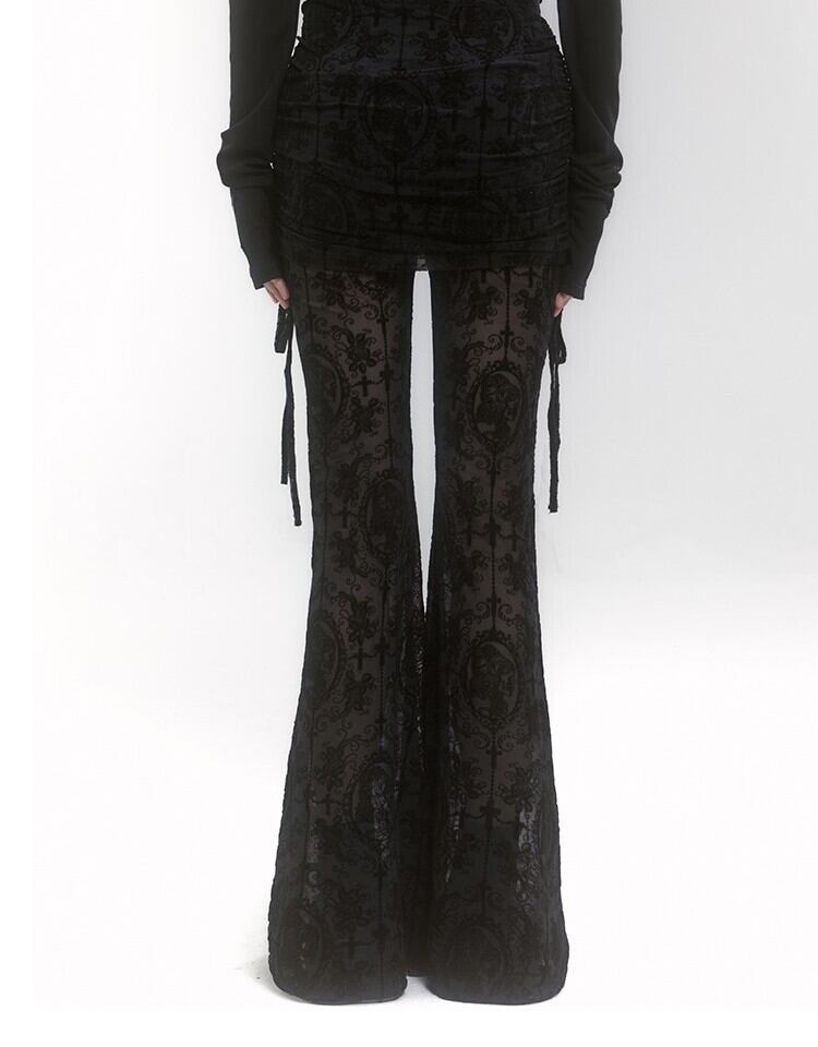 ゴシック調レースの透け感が幻想的なフレアパンツ。