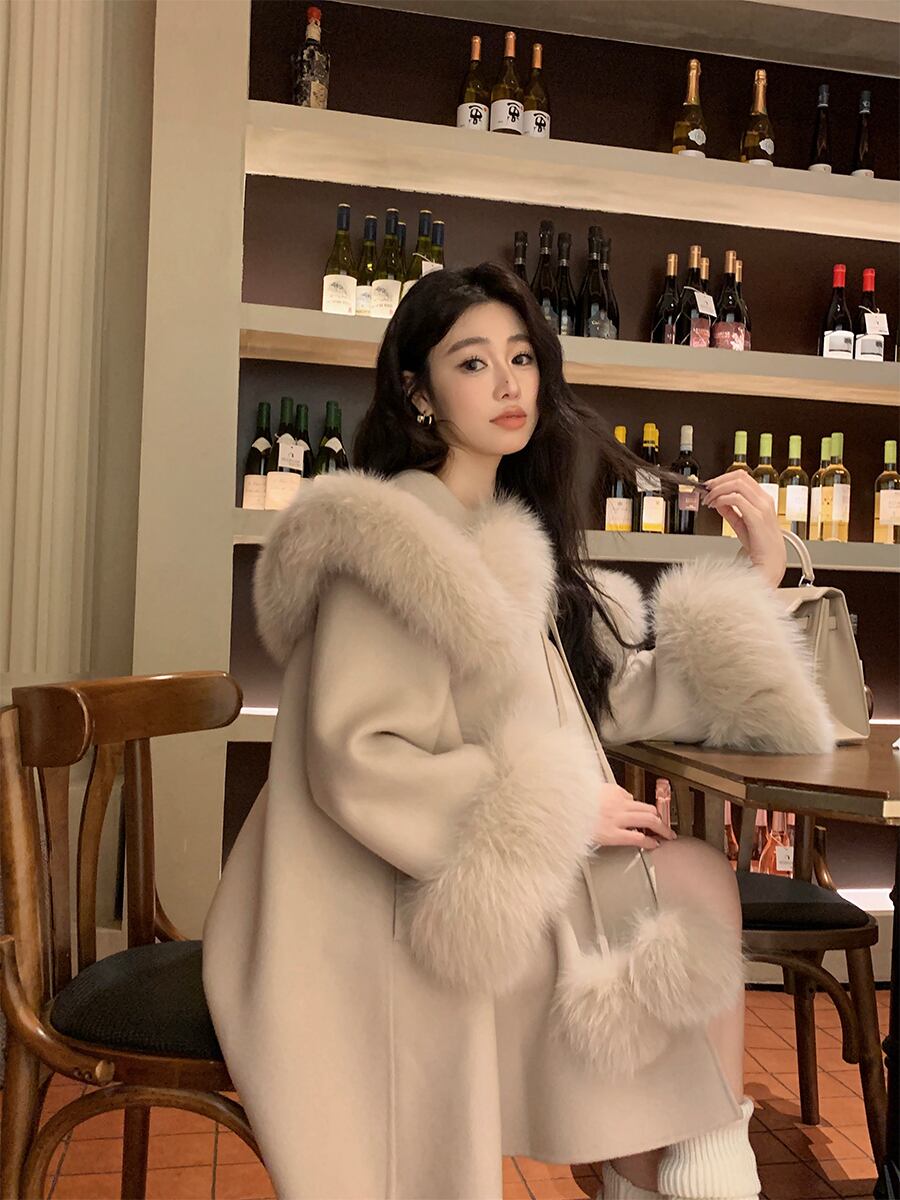 Myurina ボリュームファーケープコート miu系 フェイクファー ノーカラーコート ファーコート ロングコート レディース 秋冬アウター ジャケット 上品 量産型 ロリータ 姫ロリ