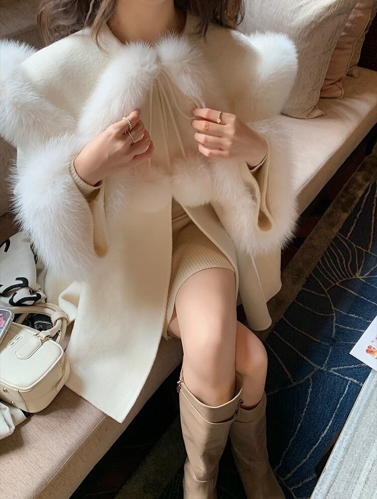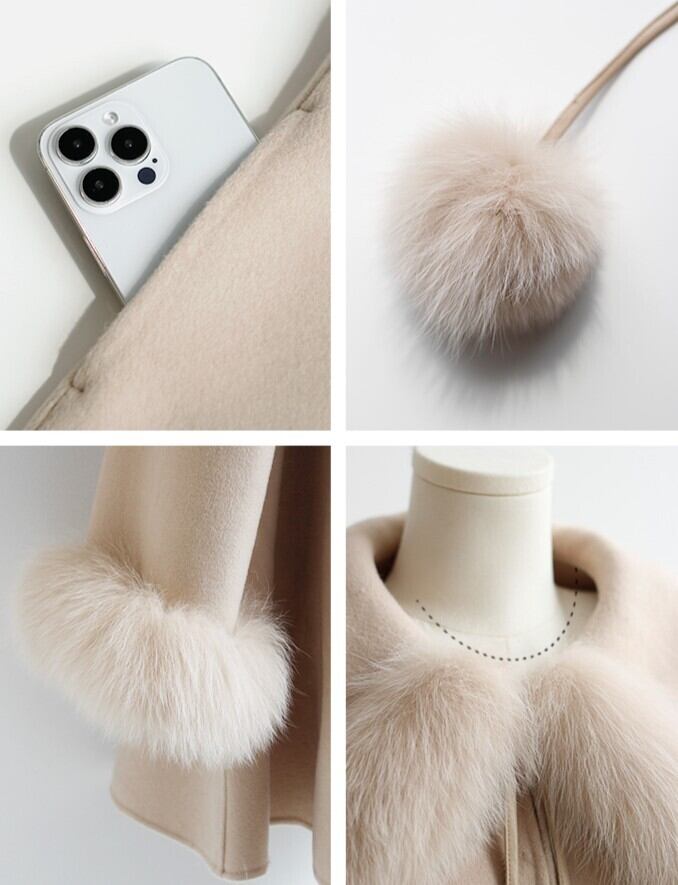 襟元と袖口に高級感のあるフェイクファーを贅沢にあしらわれたケープコートは、着るだけで冬の装いを華やかに演出。ポンチョ風のデザインで体型をカバーしつつも、軽やかで動きやすいため、デイリーから特別なお出かけまで幅広く活躍する優秀アイテムです⸜❤︎⸝