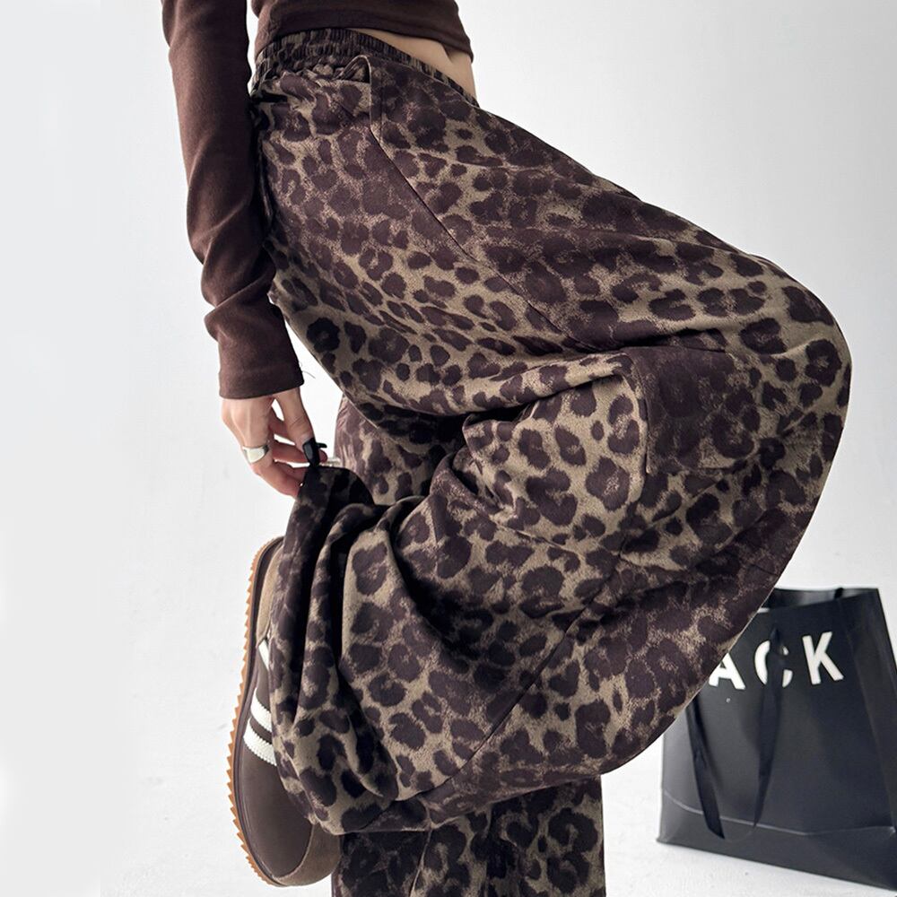 大胆なレオパード柄と秋冬用の生地感が印象的なワイドパンツ。ルーズなシルエットでユニセックスに着こなせ、ストリートやモードコーデに相性抜群。厚底スニーカーやクロップドトップスとも相性抜群♡