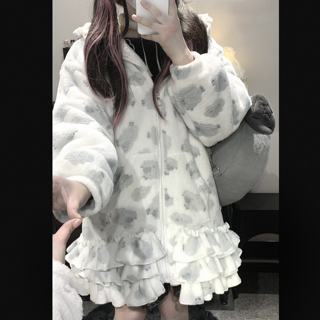 もこふわ感×ドリーミーなアニマル柄が可愛いワンピースアウター。