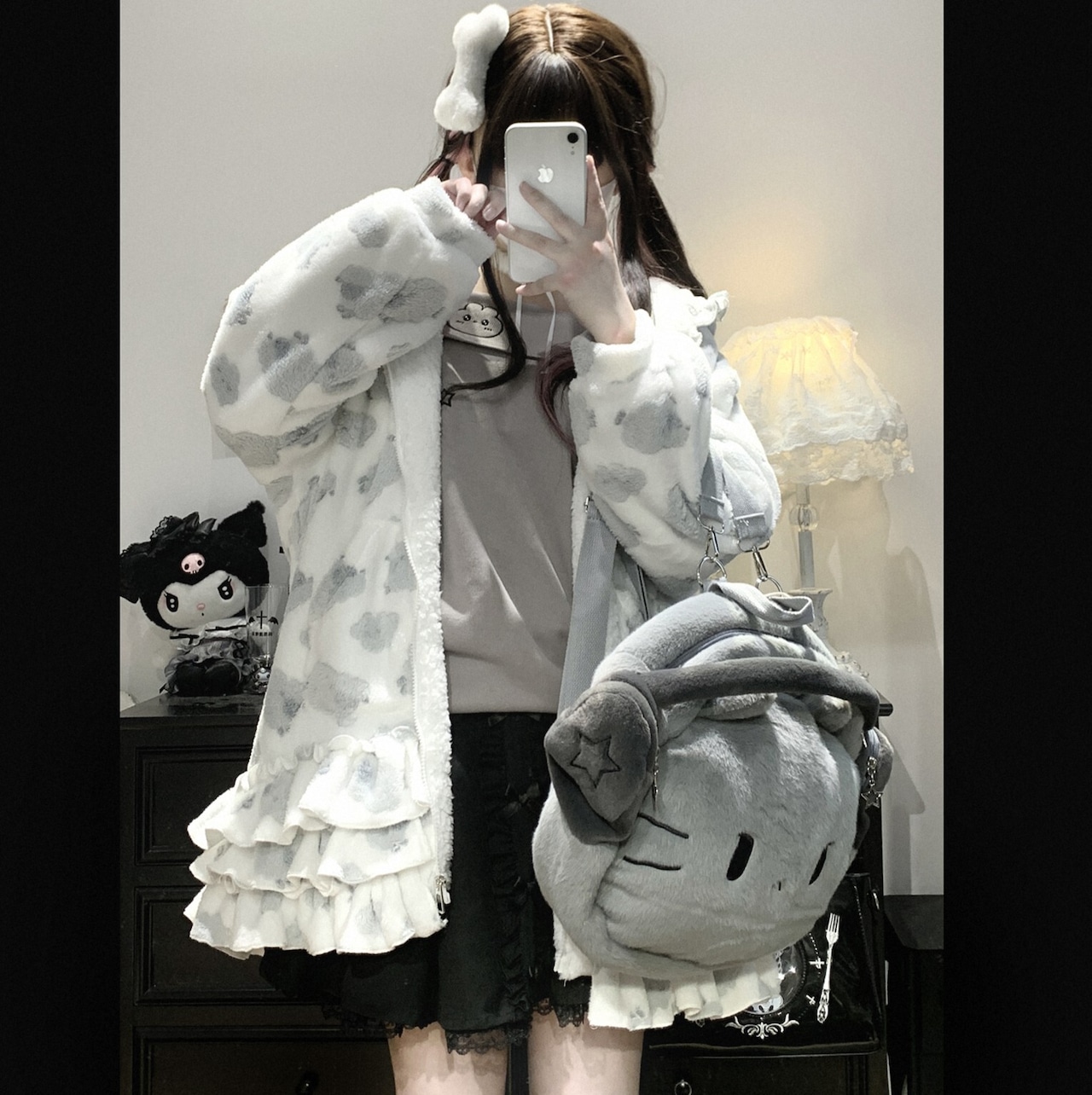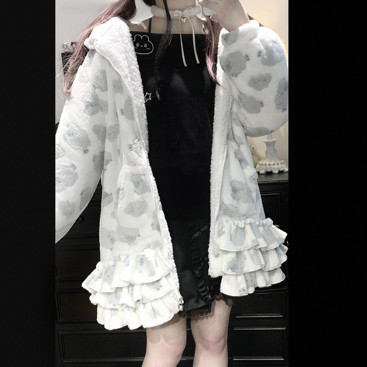 Myurina もこもこアニマルフレアボアパーカー 地雷系 フェイクファー サブカル 起毛 フードパーカー ジップアップパーカー 参戦服 メンヘラ 病みかわいい 天使界隈 秋冬 ルームウェア フリース 量産型 ロリータ