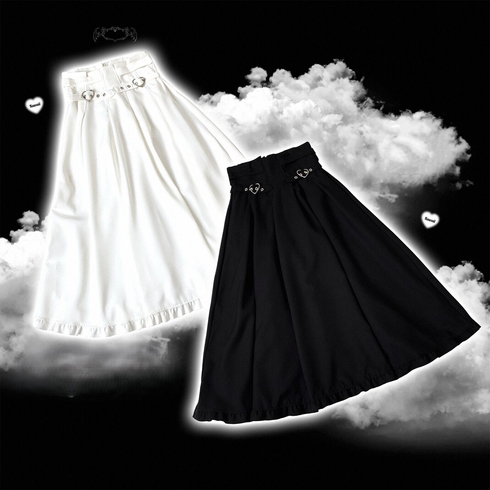 Myurina 地雷系ハートバックルロングスカート ロリータ フレアスカート ハイウエスト サブカル 可愛い 量産型 マキシスカート 参戦服 フリルスカート ゴスロリ 姫ロリ ゴシック ダークコケット ダークコア