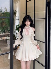 サイズ文Myurina フリルオフショルミニワンピース miu系 長袖ワンピース 全2色 ミニワンピース Aラインワンピース 切替ワンピース 襟付きワンピース 秋冬 レディース服 ヲタク 参戦服 量産型 パーティー