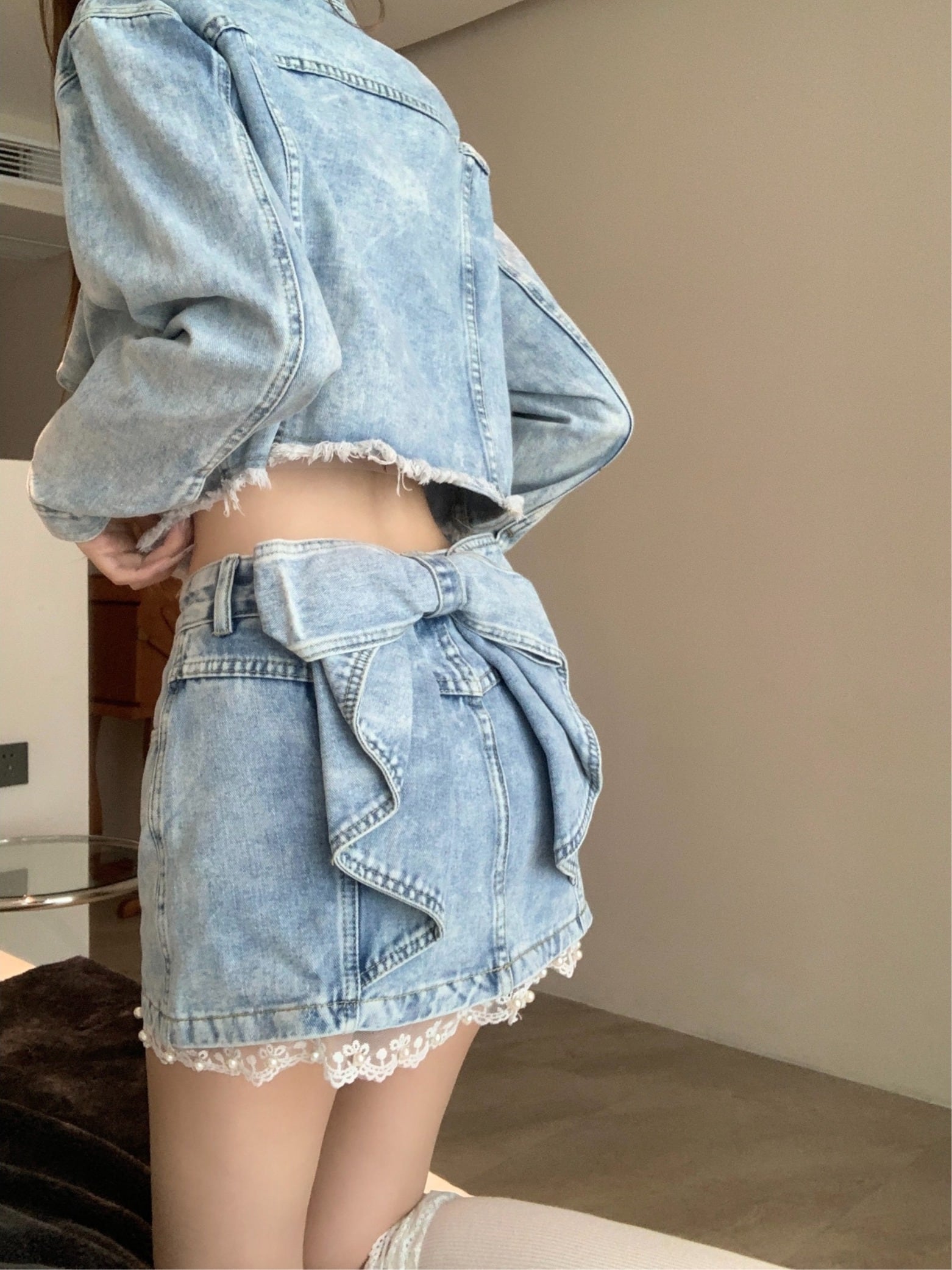 今季トレンドのビッグリボンが目を惹くデニムショートジャケット。