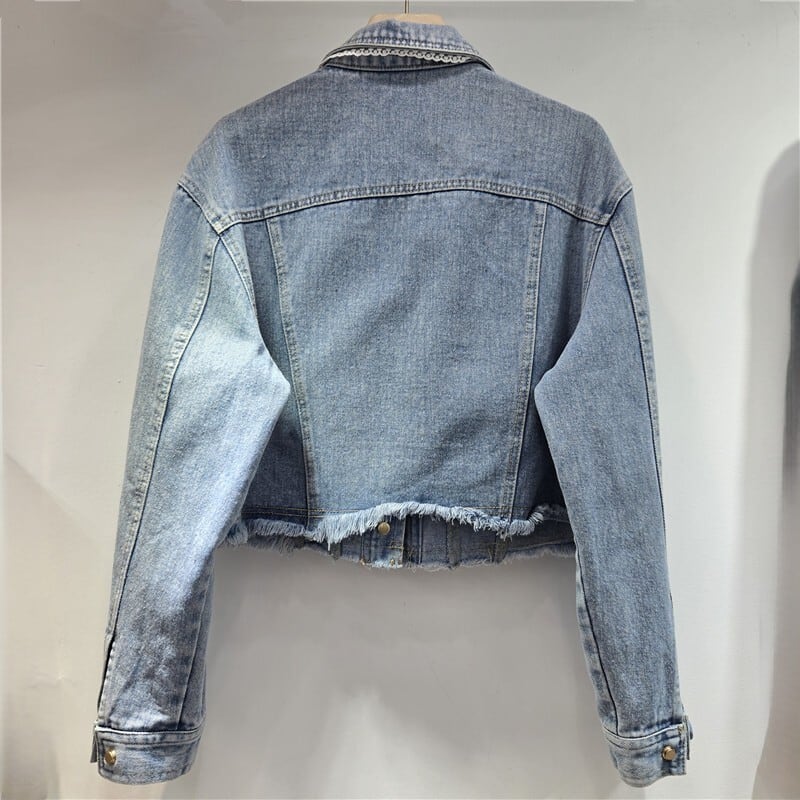 カジュアルなデニム素材にフェミニンな要素をミックスし、ショート丈でスタイルアップ効果も抜群。1枚羽織るだけでトレンド感満点の大人ガーリーなアウターです♡