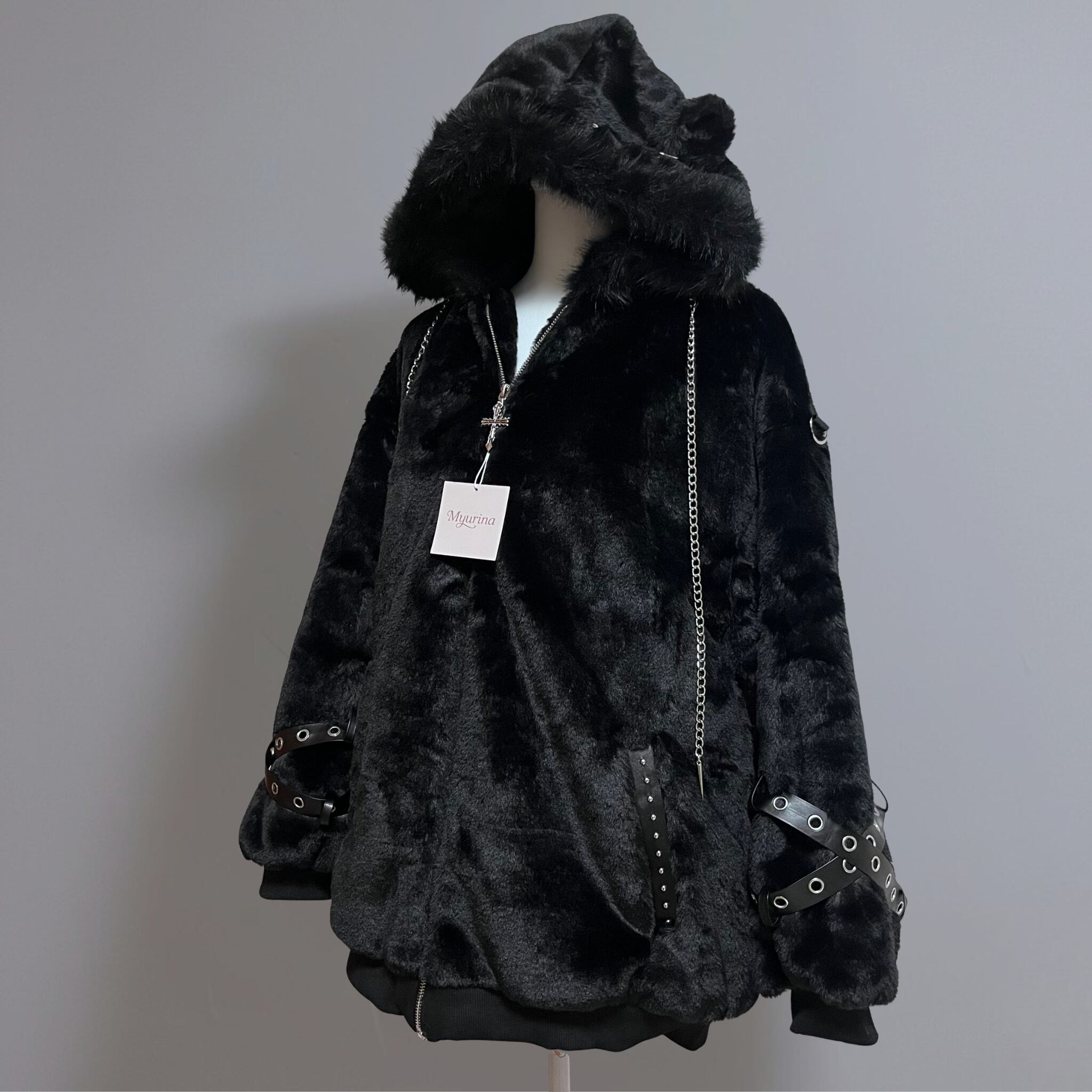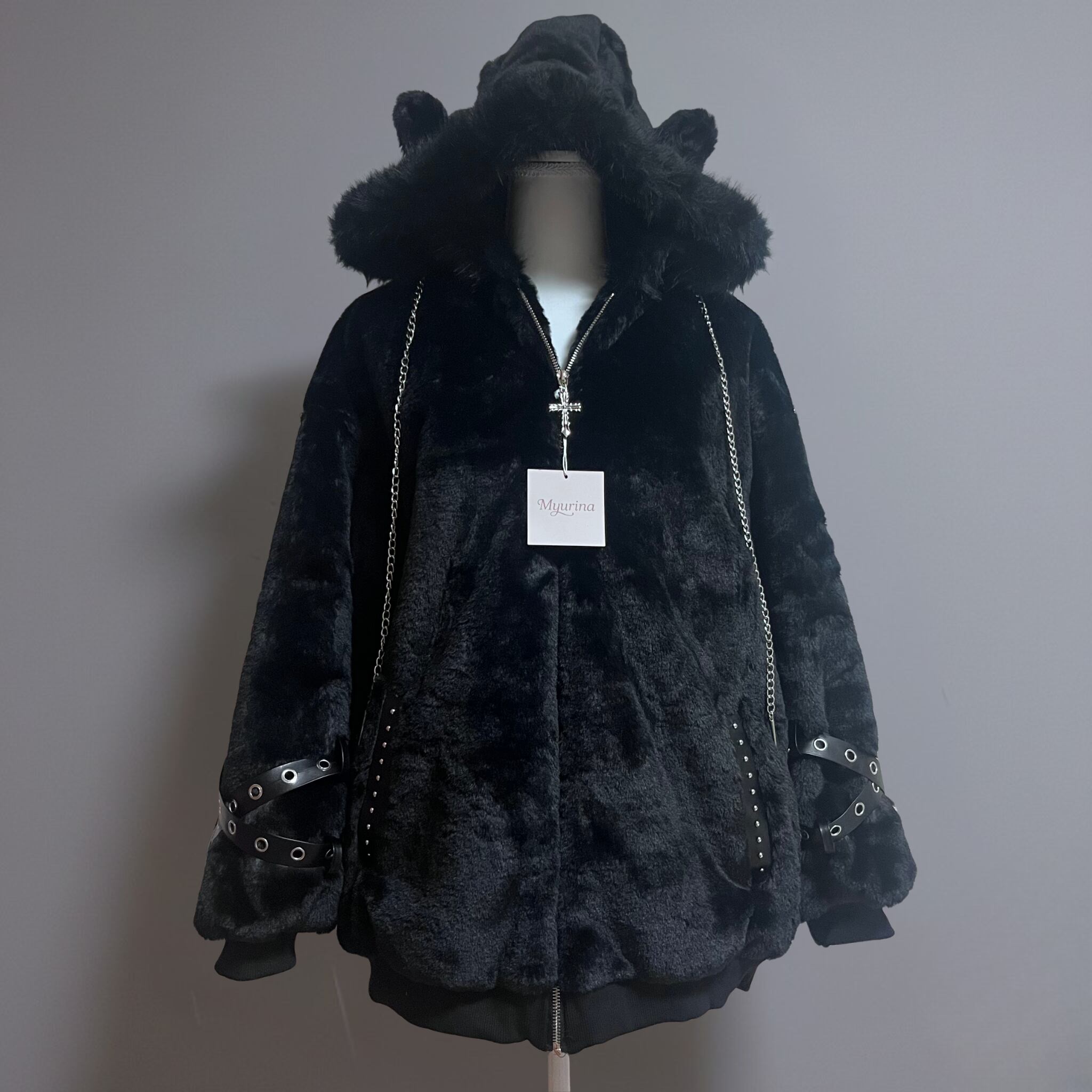 Myurina ハトメベルト 猫耳もこもこブルゾンパーカー 地雷系アウター フリースパーカー 天使界隈 ジップアップパーカー サブカル 起毛 フードパーカー ボアジャケット 参戦服 メンヘラ 病みかわいい 秋冬 ルームウェア 量産型 ロリータ