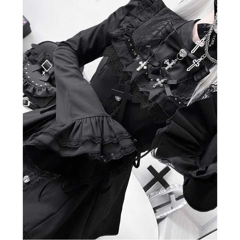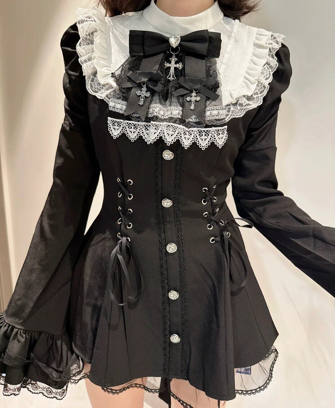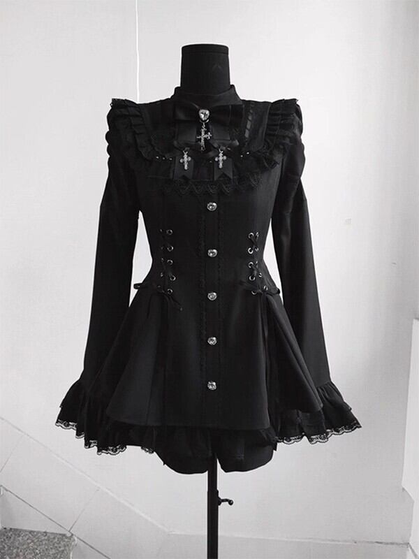 ウエスト部分のレースアップデザインと、袖長ベルスリーブで華奢見せ&スタイルアップ効果抜群。ショートパンツが付いているので、アクティブに動いても安心なためイベントやライブ参戦服に欠かせない一着。