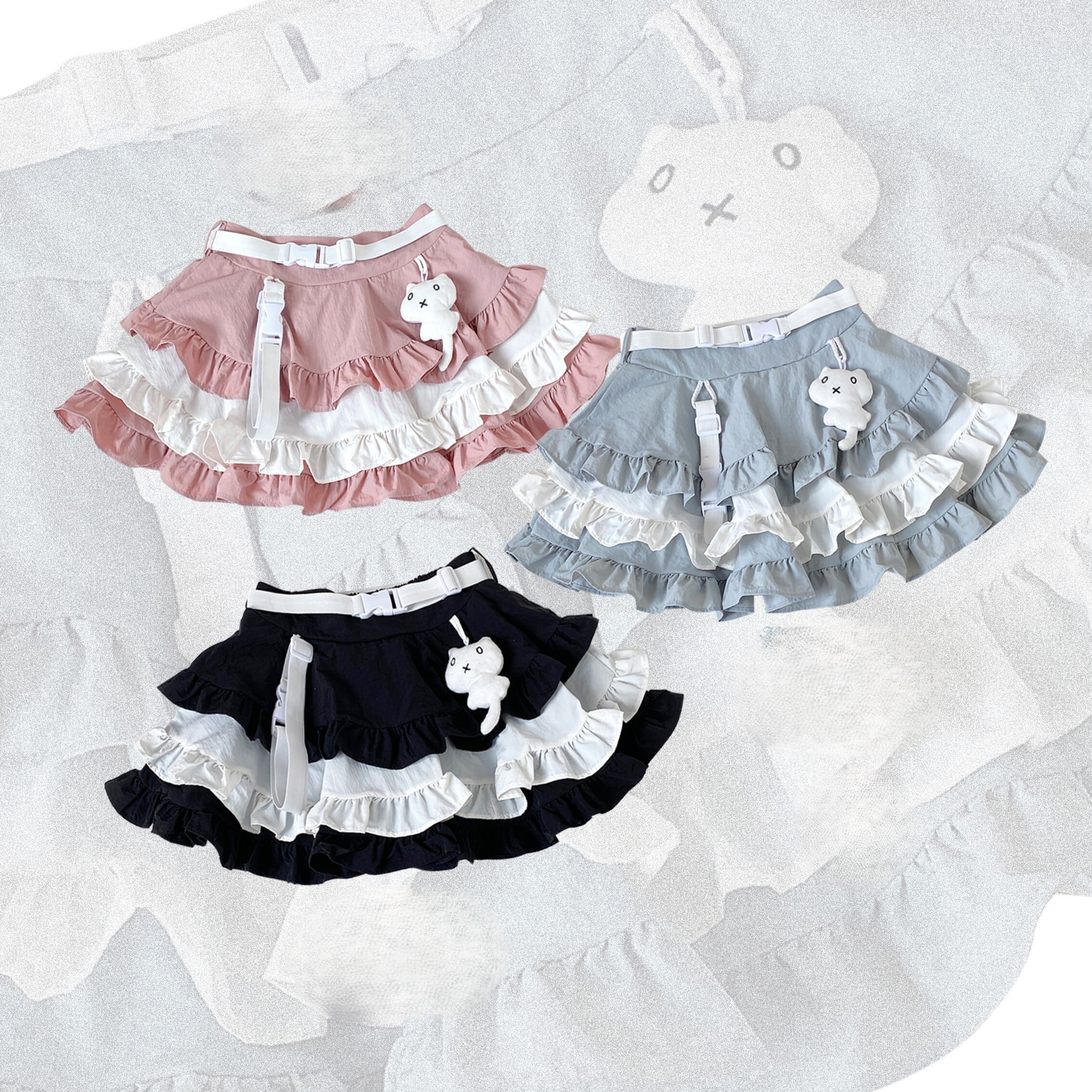 マウンテンパーカーのようなスポーティーなフード付きアウターと、フリルたっぷりのミニスカートのセットアップ。甘くなりがちなロリータファッションに、カジュアルな要素をプラス。360°どこから見ても映えるセットアップでイベントやライブ、双子コーデ・参戦服にも最適♡