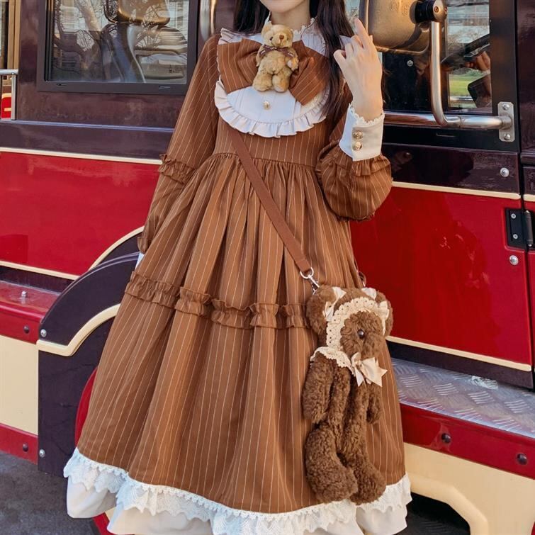 Myurina フリルロリータワンピース ドレス フリルワンピース 量産型 地雷系 長袖フレアワンピース ロングワンピース 襟付き 上品 お嬢様 ハロウィン ロリータドレス サブカル ダークコア ゴシック 量産型 参戦服 仮装 コスプレ