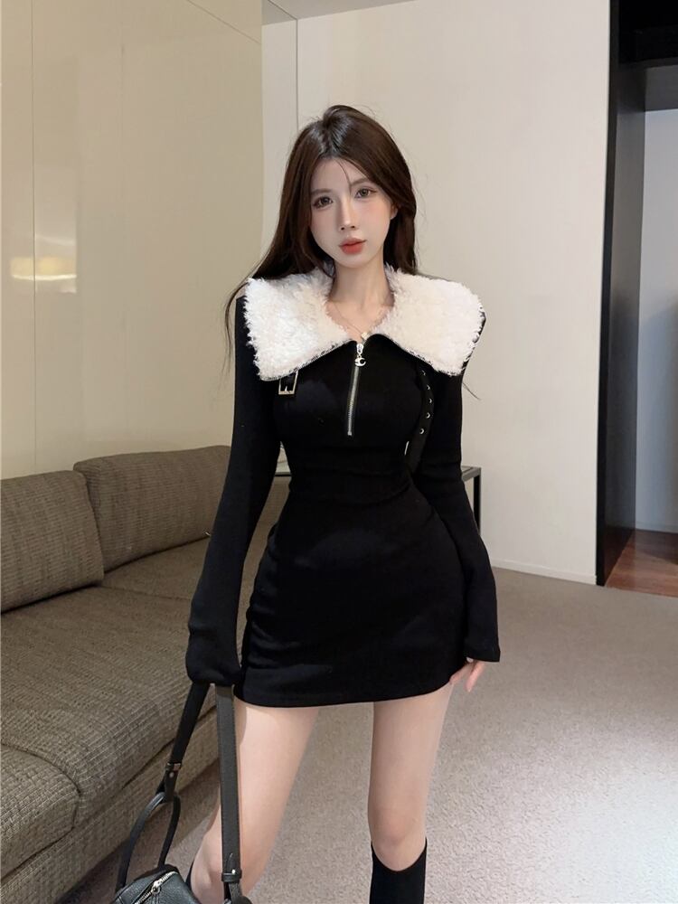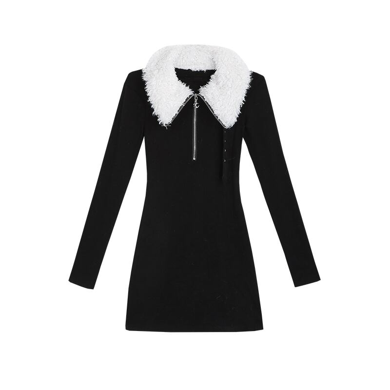 Myurina 細見え ボアニットタイトワンピース 平成ギャル ミニワンピース 長袖ワンピース ニットワンピース 地雷系 量産型 参戦服 Aラインワンピース ストリート系 デート服 秋冬 ヲタク Y2K miu系 パーティー