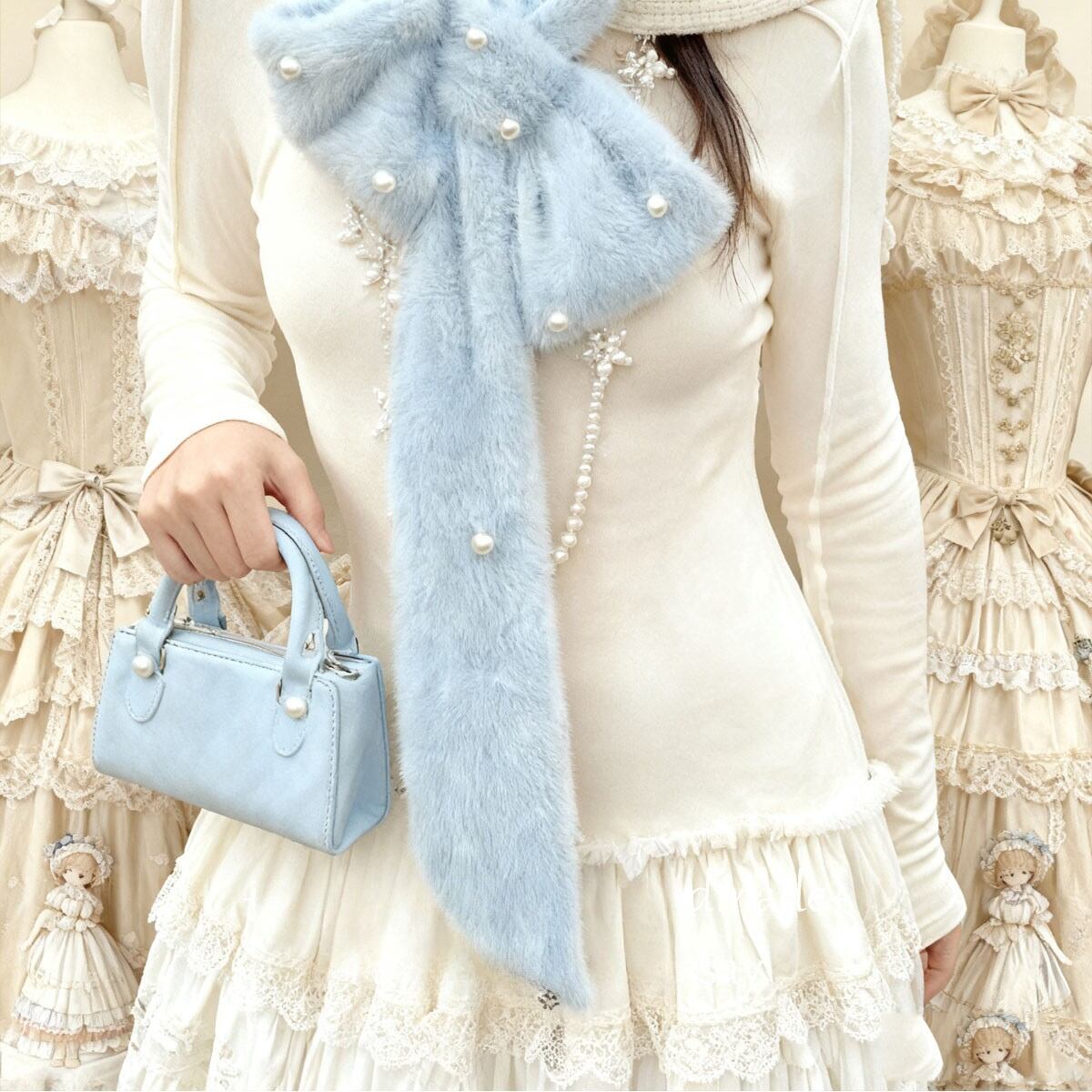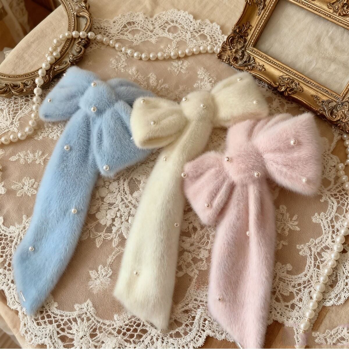 Myurina リボンモヘアマフラー 量産型コーデ 地雷系 ふわもこ スヌード ティペット 防寒 付け襟 冬小物 ワンホン ストール ネックウォーマー 参戦服 韓国 ロリータ レディース秋冬 Y2K デート服