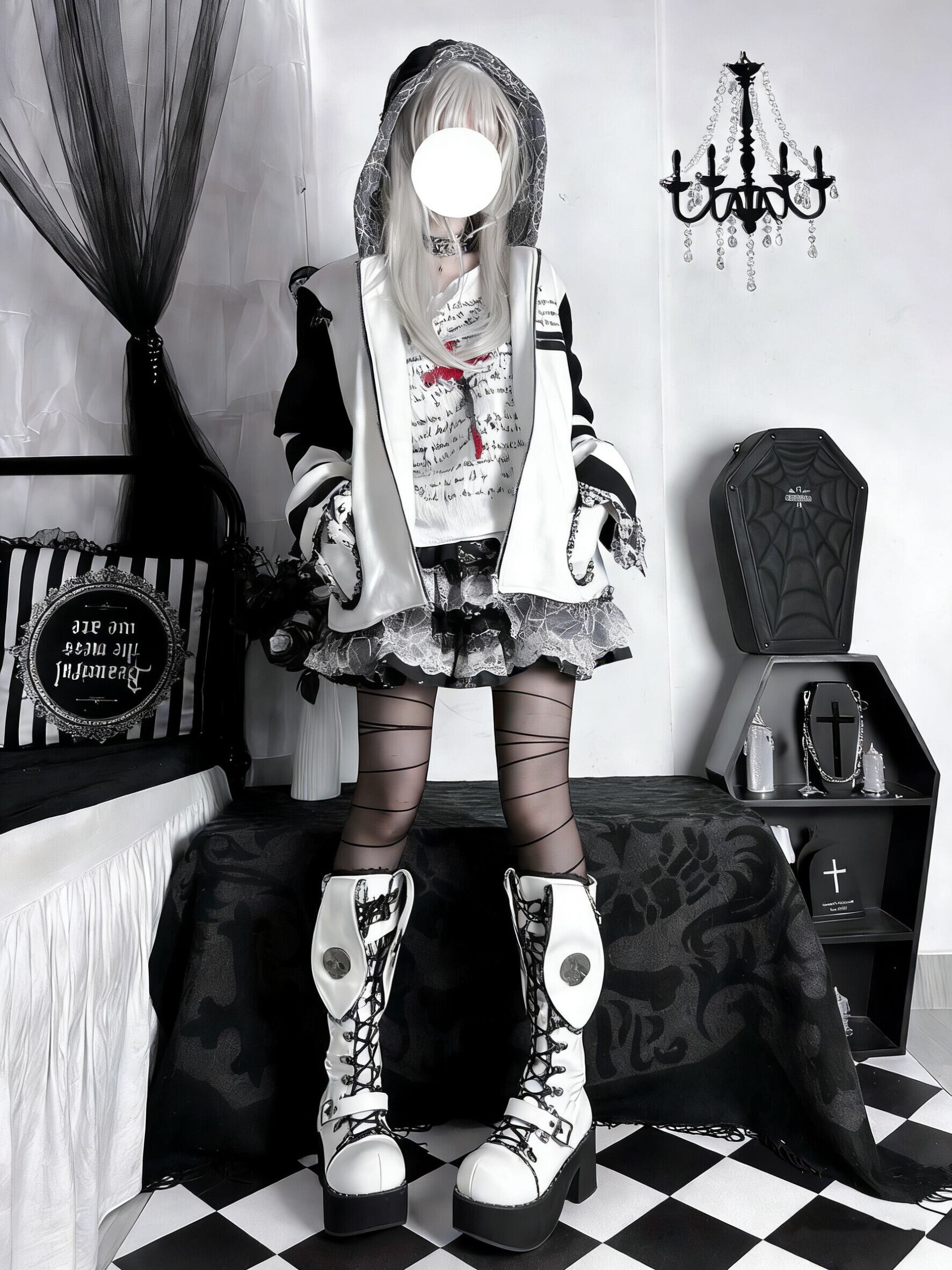 ・フリルミニスカート × ニーハイソックス × 厚底メリージェーンでゴシック地雷。