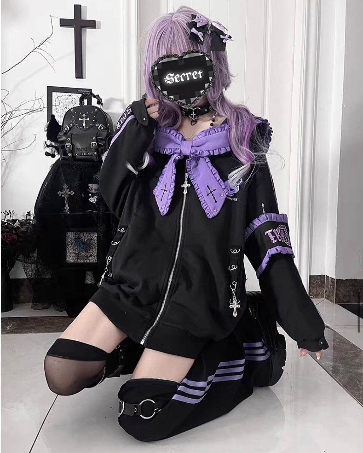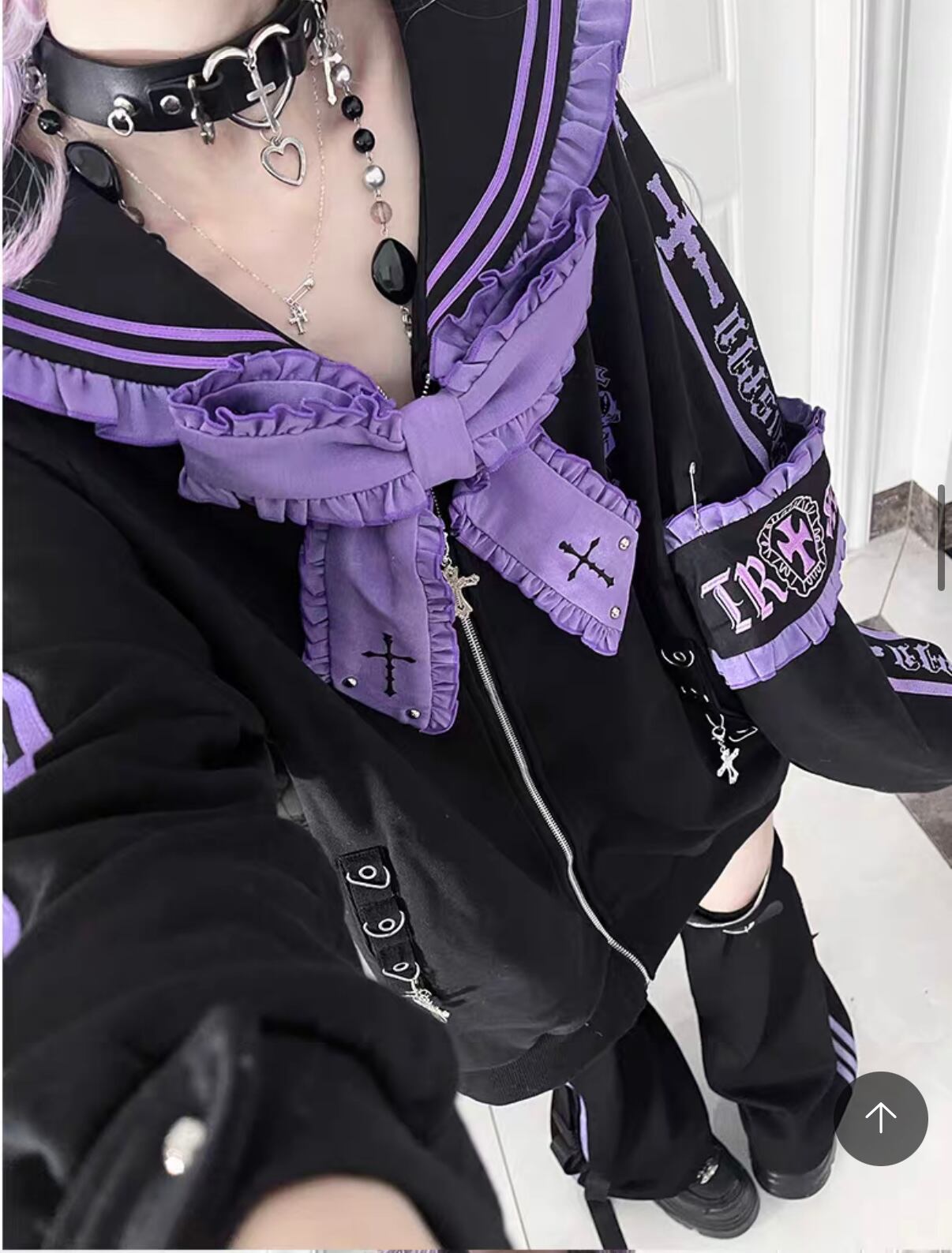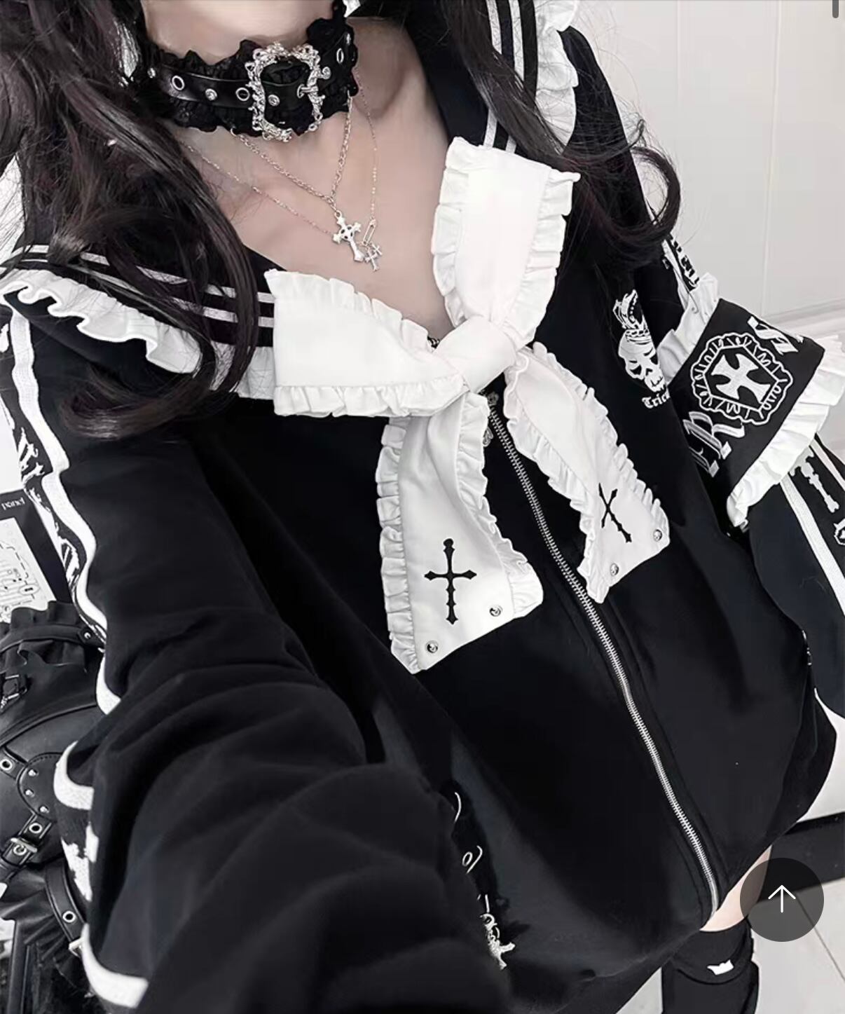 大きなリボンとセーラーカラーが目を引く、究極の地雷系パーカー。