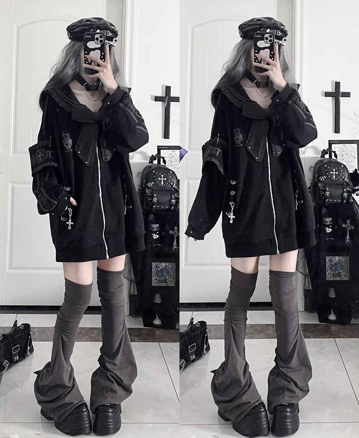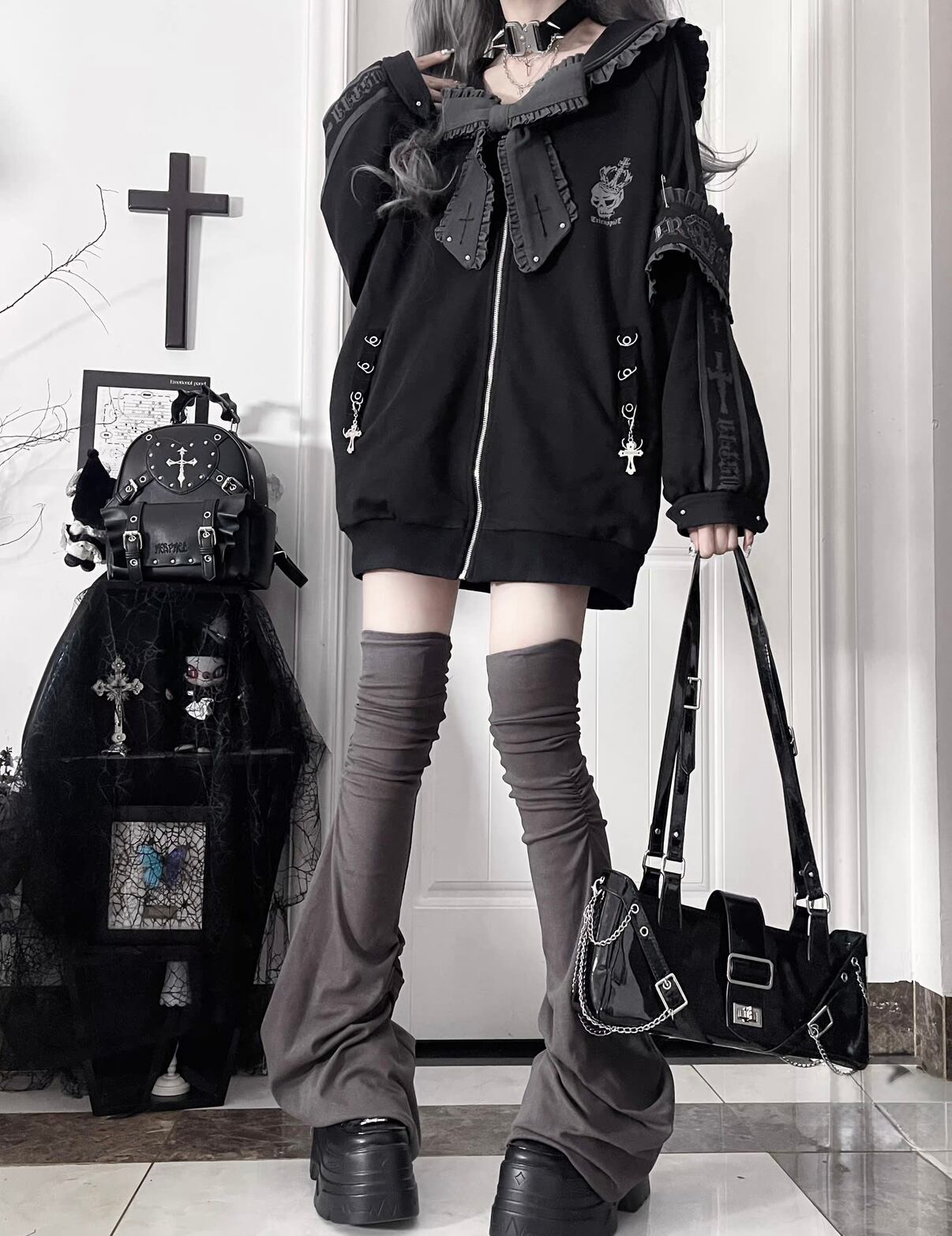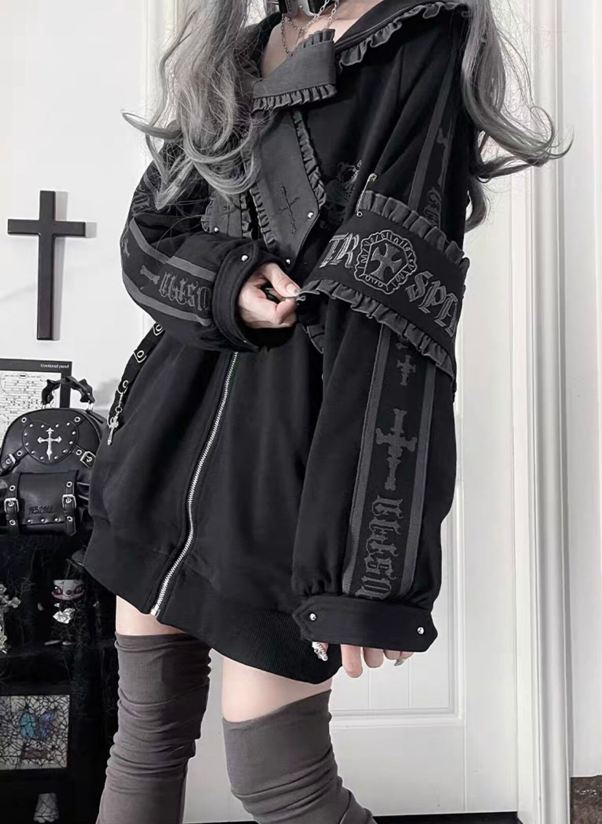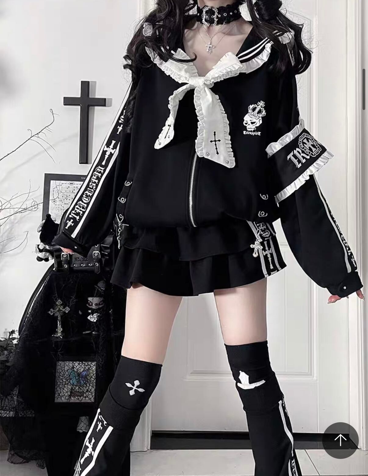 大きなリボンとセーラーカラーが目を引く、究極の地雷系パーカー。